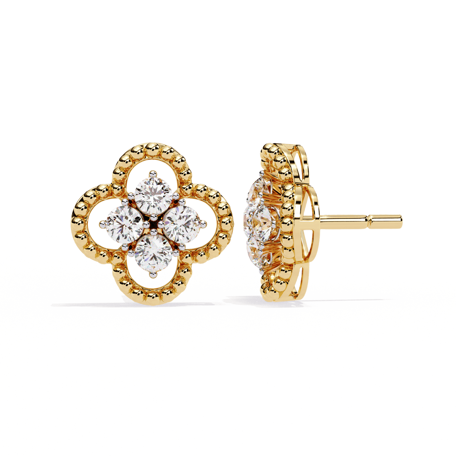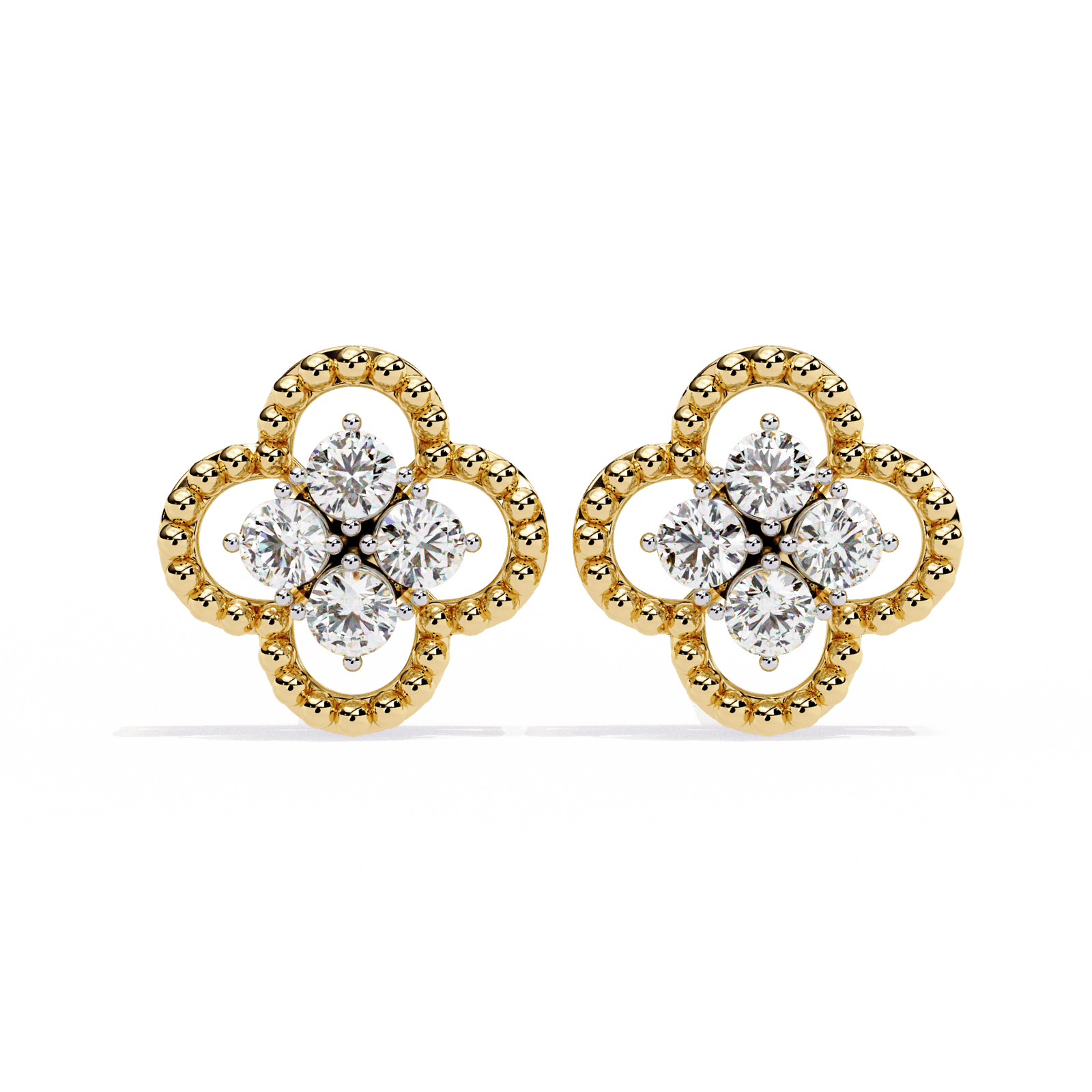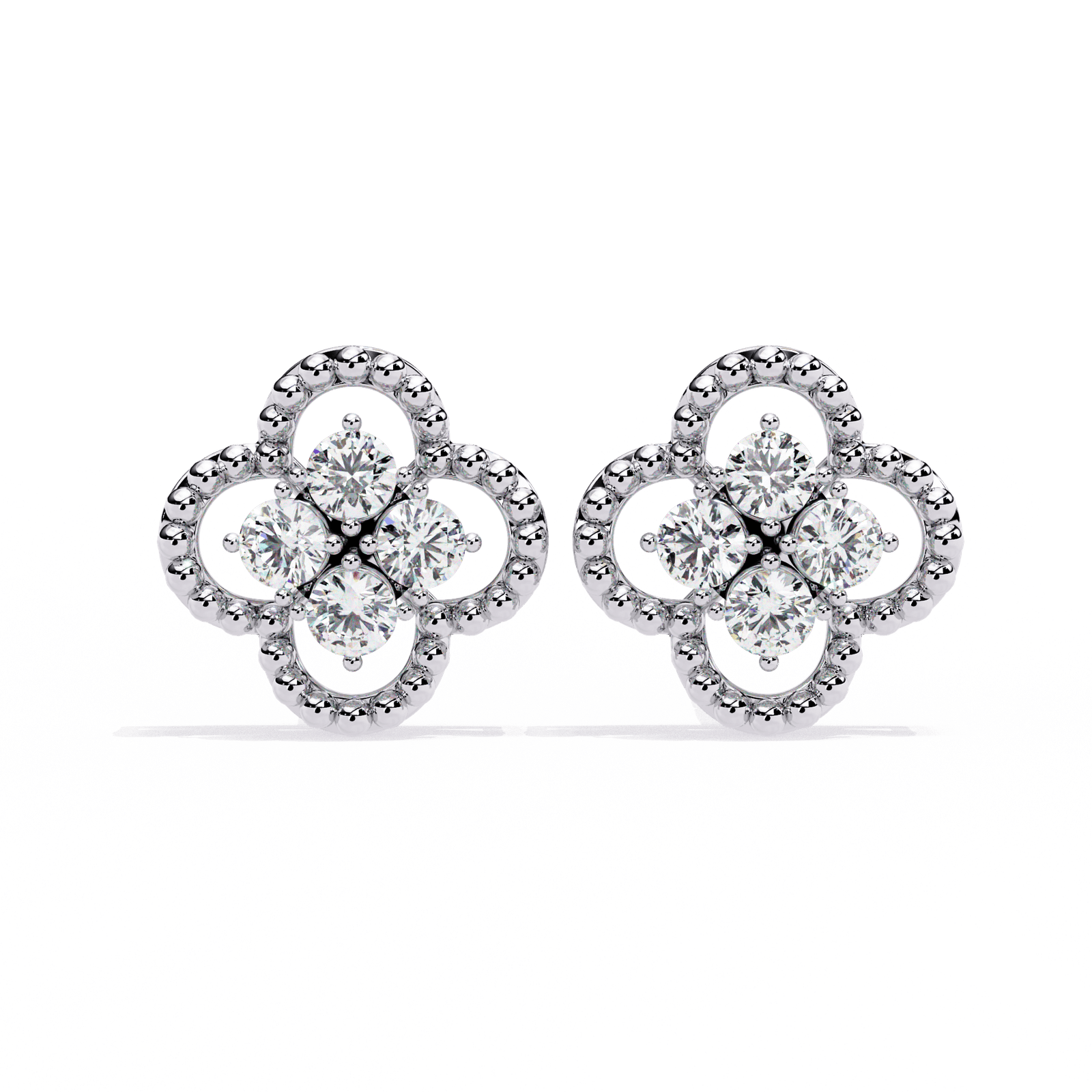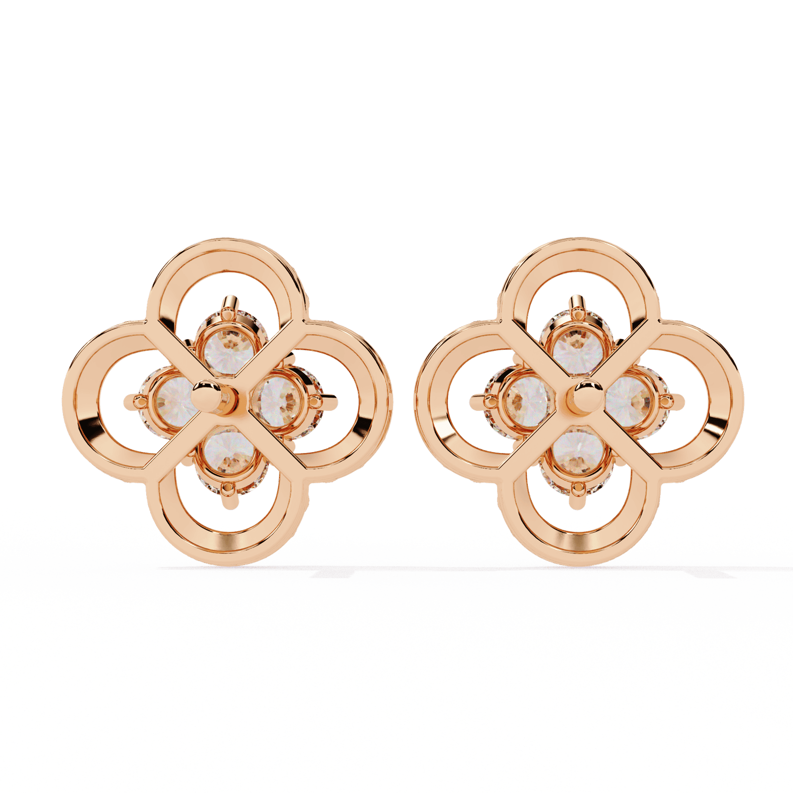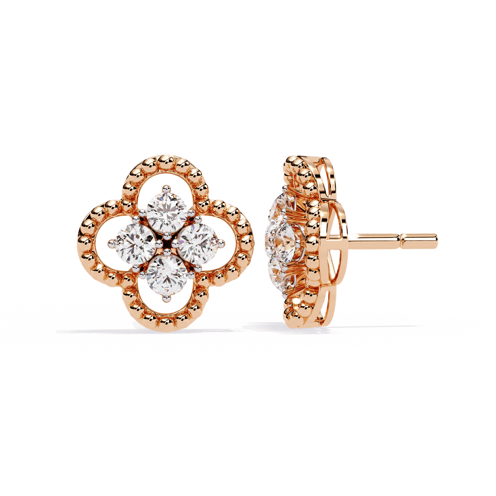 Perlée Bloom Studs | 1.08ct Rose Gold Clover Earrings, Quatrefoil Diamond Cluster, Statement Good Luck Charm, Gift for Her